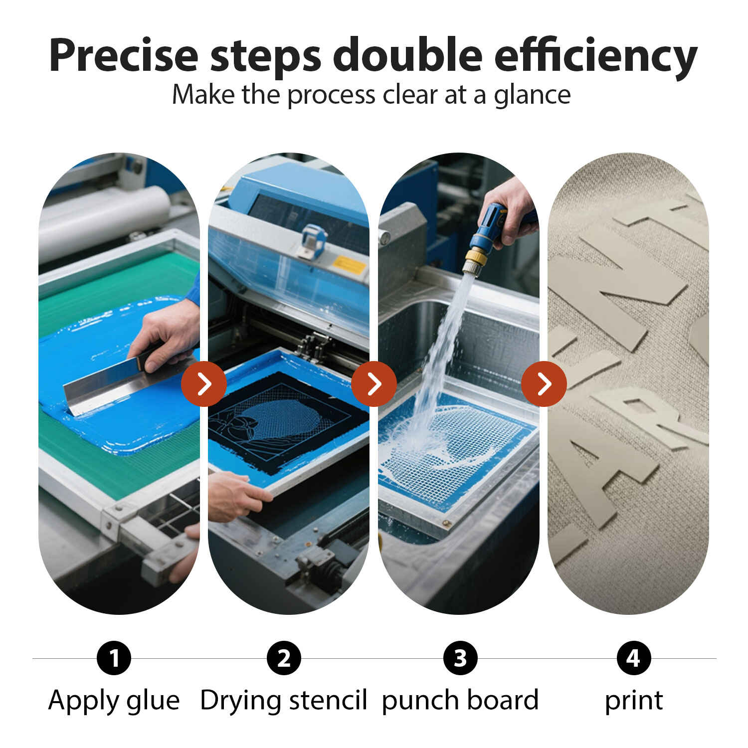 High density photosensitive emulsion for sharp detail, fast drying, and long-lasting stencil durability. Perfect for screen printing ink, PVC free plastisol ink, DIY makers, small studios, workshops, and growing apparel brands.