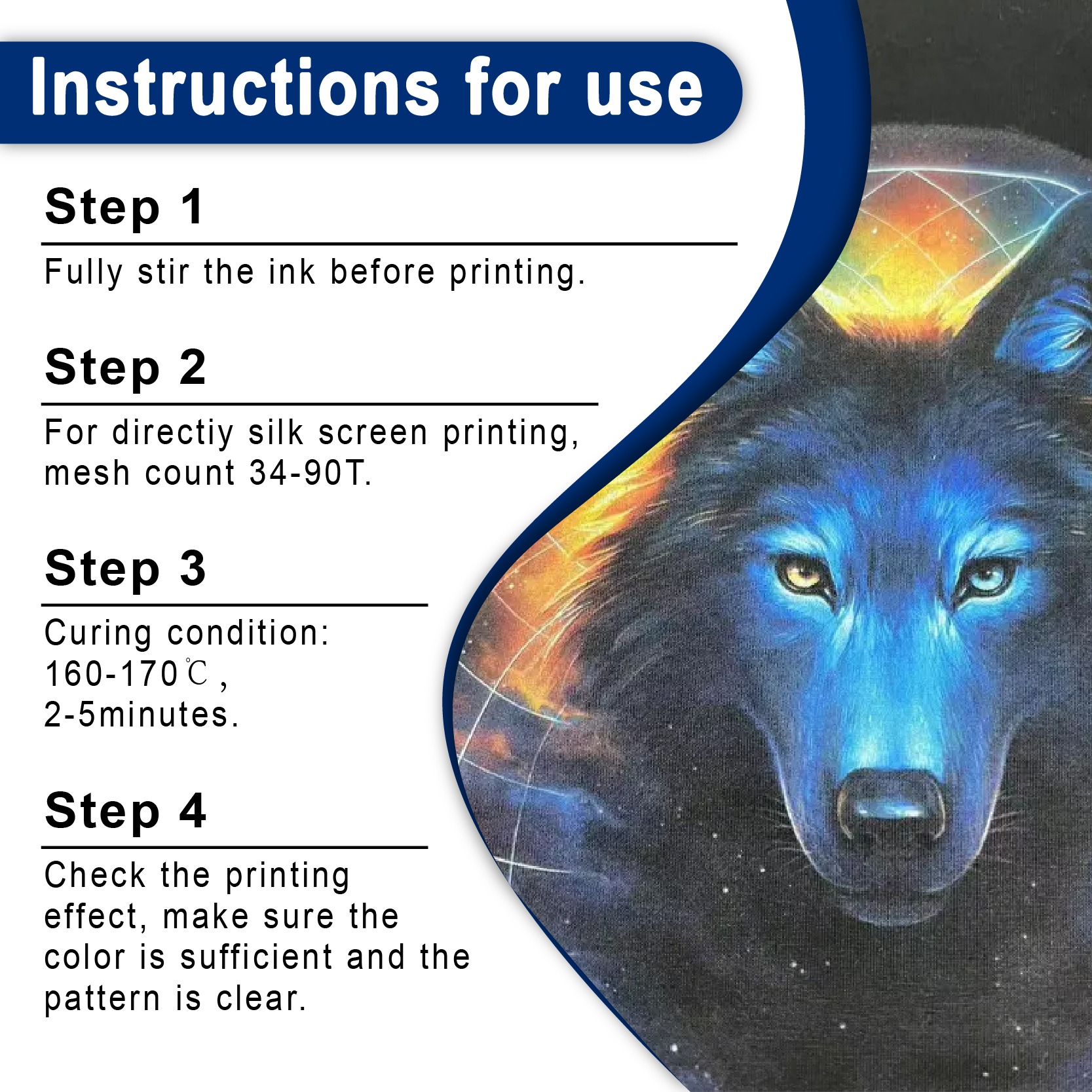 Shaliteink’s navy blue plastisol ink is designed for efficient and reliable treatment. We recommend treatment at 160 ° C (320 ° F). For flash drying, target 120 ° C to 140 ° C (248 ° F to 284 ° F) for 3-5 seconds. Getting the right treatment temperature in the entire ink layer is important for print durability. While laser temperature guns provide surface readings, it is important to ensure that the core of the ink layer reaches the target temperature. We recommend testing stretch and washing before complete production to confirm optimal treatment. A properly corrected print would withstand several washes, without cracking or fading. For the best results, especially on dark clothing, consider using the high opative white plastisol ink such as underbase white for maximum vibrancy.