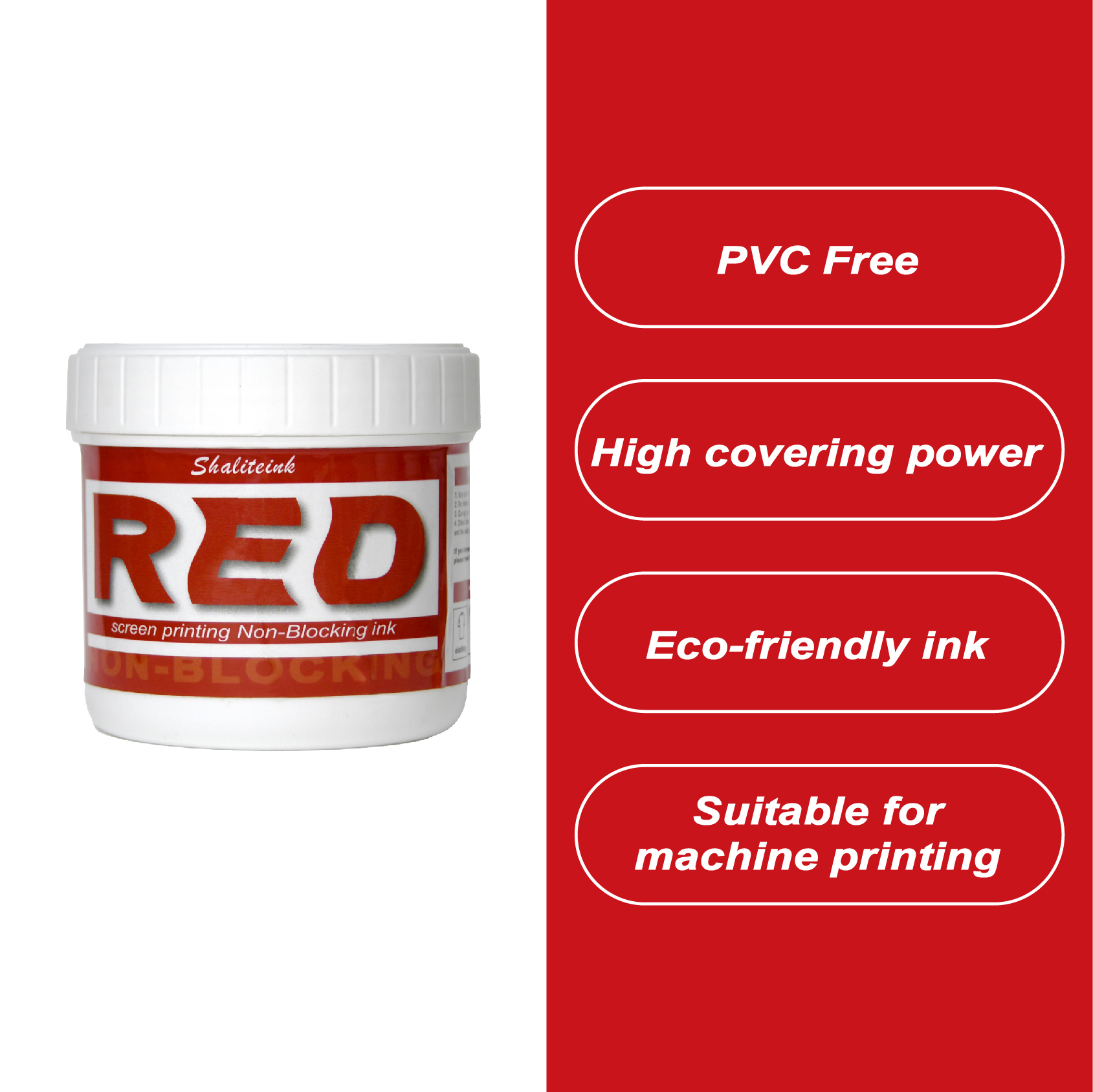 Elevate your press production with , with Shalitein, the global leader in the textile printing industry. With more than 20 years , years of manufacturing experience and a proven track record of working , working with world-renowned brands, we offer you premium quality at direct factory prices. Note: Red PVC-free screen printing ink is specially designed for professional screen printers who require vivid colors, environmental compatibility and excellent processability without , without high price.