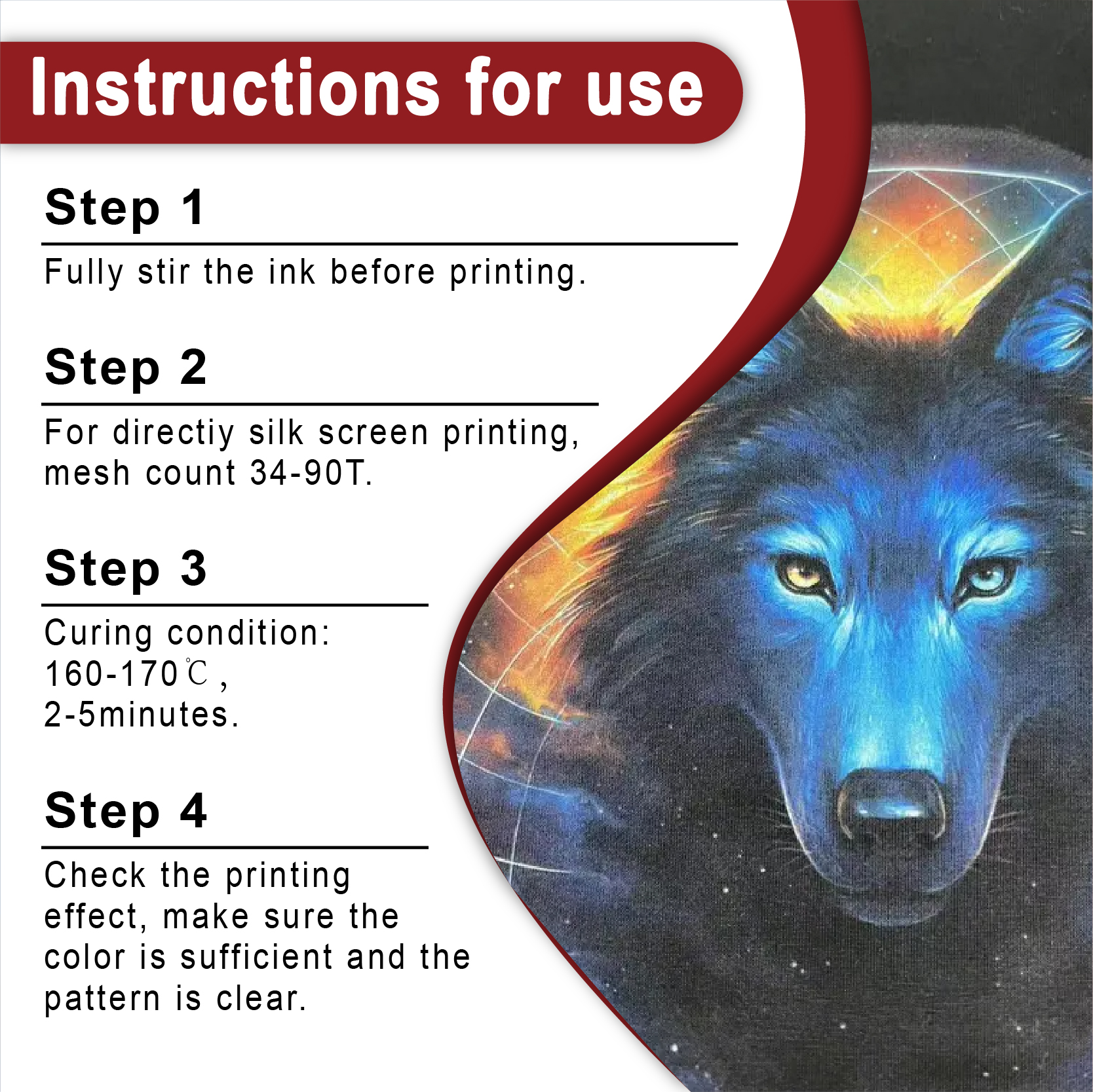 - For best results on dark fabrics, consider a white underbase, although our high opacity often makes this unnecessary.